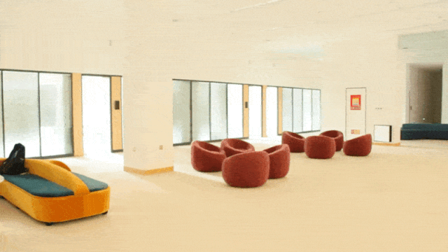 一层的学术研修间,现代、时尚又实用,灵活机动的桌椅、86寸的触控一体机、智能自助预约设施的配备,是师生读者进行学术研讨、自主研修的极好选择。