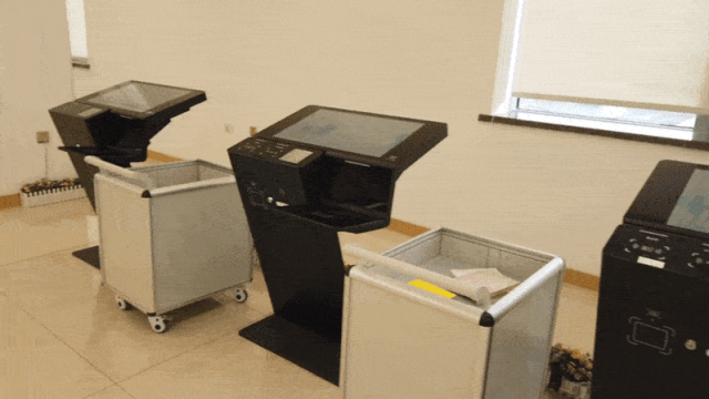 二层咨询台的后方是自助设备区,包括自助存包柜27组,可实现中途取物,且配备有方便笔记本电脑等物品存放的大柜,更显人性化。两台自助打印复印扫描设备,可实现在校园任意地点通过手机发送打印任务,来馆即可刷卡拿取打印材料。两台自助预约设备,可实现自习座位、研修小间的自助预约。四台自助借还设备,可实现无卡借阅,多本图书的同时借阅。连廊处的两组自助预约书柜相当于一个微型的24小时图书馆,可摆放480本书,实现无卡自助借书、还书、预约取书的功能。