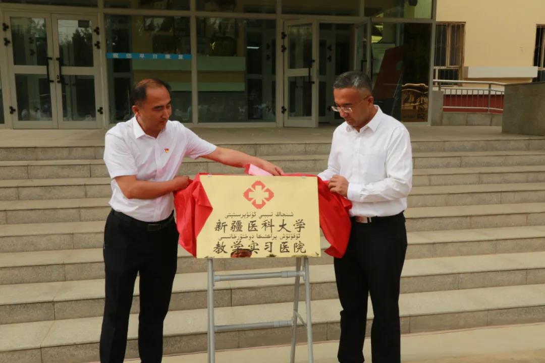 beat365在线唯一官网党委副书记、校长凯赛尔·阿不都克热木与策勒县委书记马江山共同为“beat365在线唯一官网教学实习医院”揭牌。