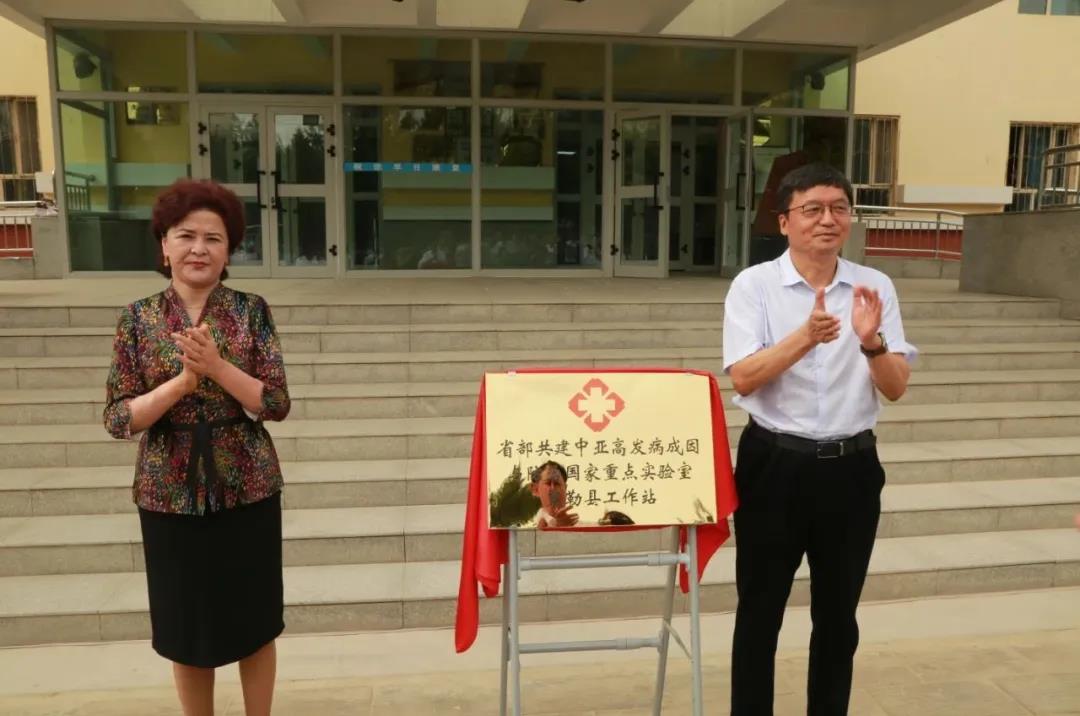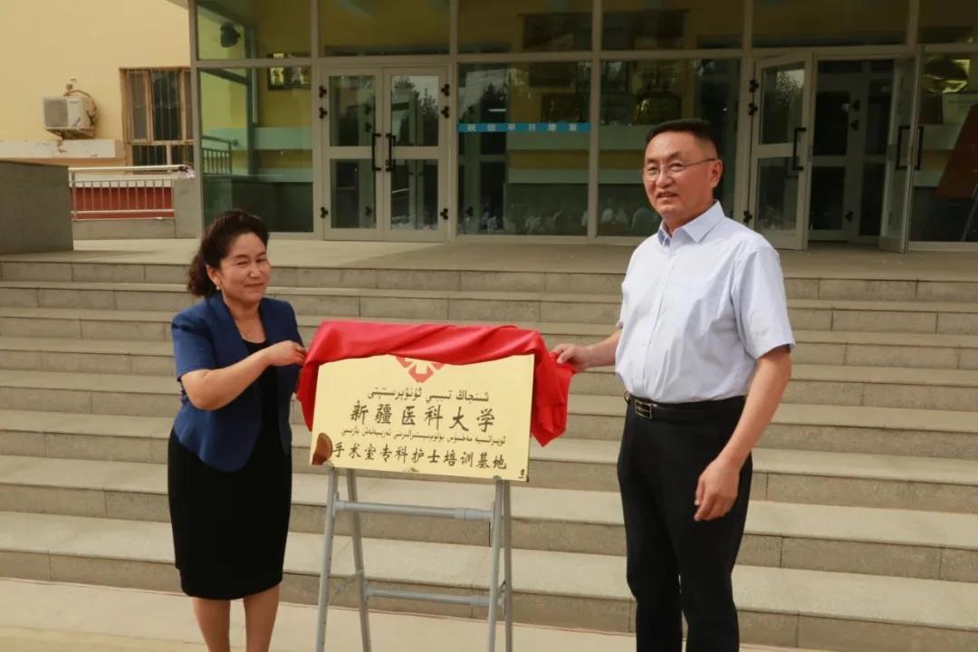 双方签署了《beat365在线唯一官网与策勒县人民政府加强医疗合作的框架协议》,“自治区手术室专科护士培训基地”和“省部共建中亚高发病成因与防治国家重点实验室策勒县工作站”同时揭牌。