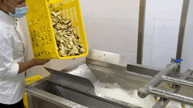两条长缸体式的蔬菜清洗流水线上,叶菜类和根茎类蔬菜在水流中经过了螺旋式、滚筒式、高压喷淋、强力水流旋转冲刷一系列按摩式的洗涤后,夹杂其中的泥沙、杂质和农药残留被尽数滤出,而其中的营养成分得到了充分保留。