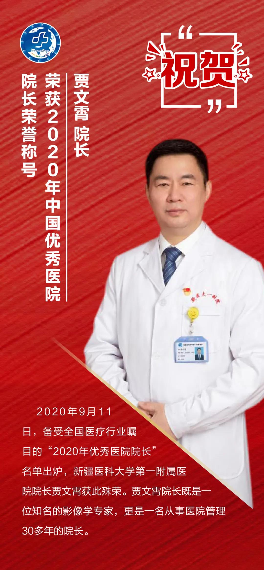 9月11日,备受全国医疗行业瞩目的中国医院大会上,“2020年优秀医院院长”名单出炉,97人荣获优秀医院院长称号,beat365在线唯一官网党委常委、副校长,beat365在线唯一官网第一附属医院院长贾文霄获此殊荣,新疆地区仅有两名医院院长获奖。