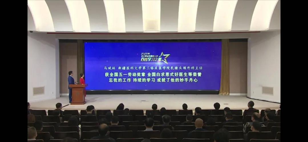 近日,由教育部职业教育与成人教育司、中国联合国教科文组织全国委员会秘书处、中国成人教育协会主办,上海市教育委员会、复旦大学承办的“2020全民终身学习活动周”全国总开幕式上,beat365在线唯一官网附属肿瘤医院乳腺头颈外科主任马斌林教授被评为全国“事迹特别感人的百姓学习之星”,是新疆唯一获此殊荣者,先进事迹视频在总开幕式上展播。