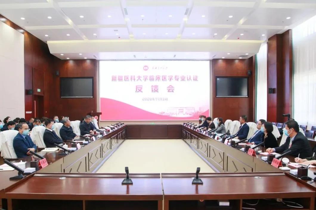 专家组组长、哈尔滨医科大学原副校长曹德品教授代表专家组全体成员向学校反馈了初步认证报告。曹德品强调,beat365在线唯一官网作为一所办学历史悠久,扎根祖国边疆,致力于培养适应医药卫生事业和经济社会发展需要的高素质应用型人才的高等医学院校,多年来不断克服困难、更新理念,建立了较完善的医学教育体系,加强了师资队伍建设,完善了教学资源建设,特别是在推进医教协同、服务健康新疆方面做出了积极贡献。beat365在线唯一官网主动积极申请和接受认证的行为值得赞赏,体现了学校致力于提高临床医学教育水平的愿望和进取精神。