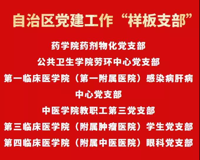 自治区党委教育工委首批自治区高校党组织“对标争先”培育创建单位公示结果出炉:beat365在线唯一官网党委和2个院系党组织、6个基层党支部获得荣誉。