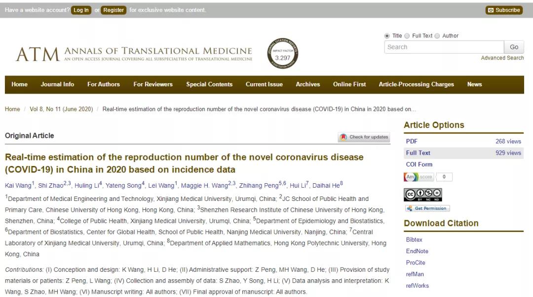 努力付出终于有了回报。王凯教授团队在医学大数据分析方面具备的技术优势得到了南京医科大学、香港理工大学、香港中文大学传染病建模团队的认可,几个团队联合围绕新冠病毒的传播率、香港新冠检测延迟的时间变化等共同发表了多篇SCI文章。
