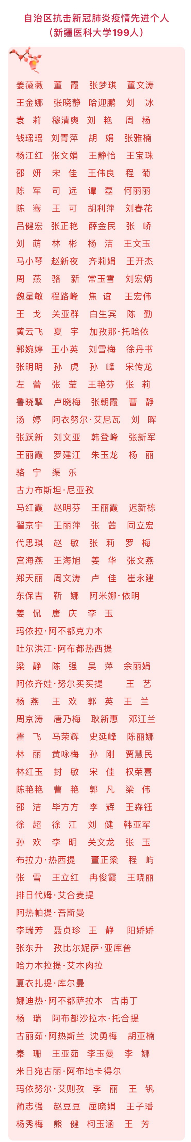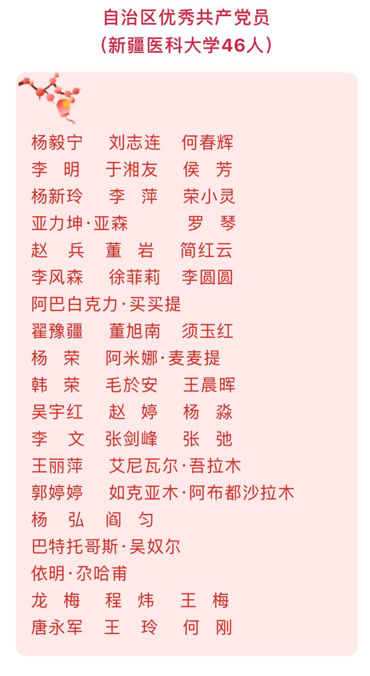 1月20日上午,自治区抗击新冠肺炎疫情表彰大会在新疆人民会堂隆重举行。beat365在线唯一官网199人获得“自治区抗击新冠肺炎疫情先进个人”称号,11个基层党组织获得“自治区先进基层党组织”荣誉,42个集体和46名个人荣获了“自治区先进集体”和“自治区优秀共产党员”荣誉称号。