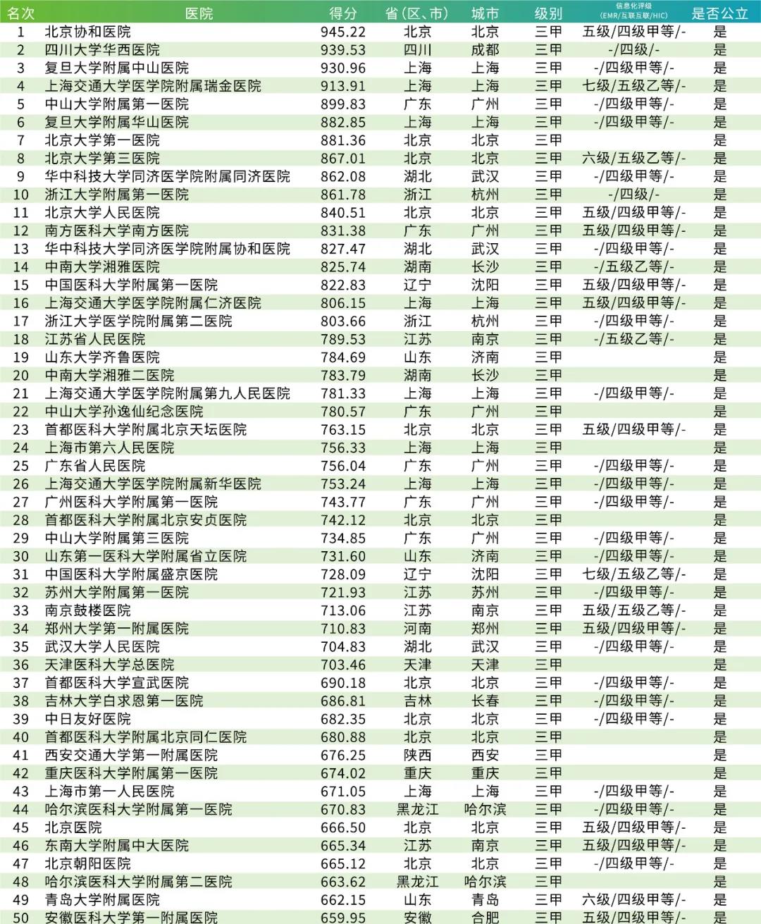 2020年中国顶级医院100强