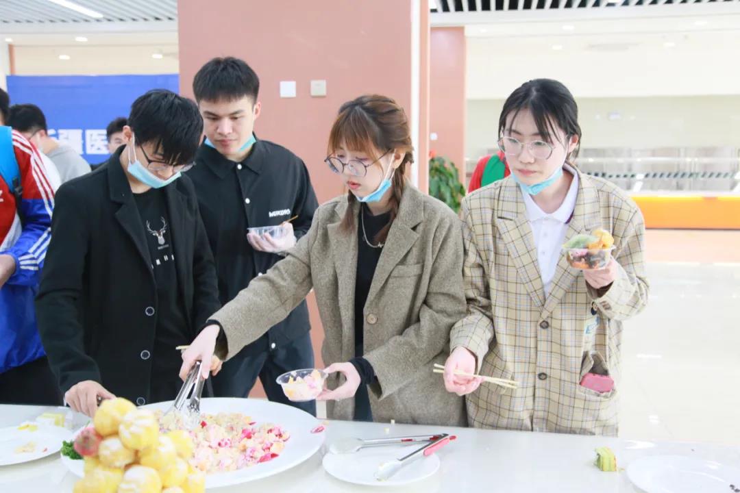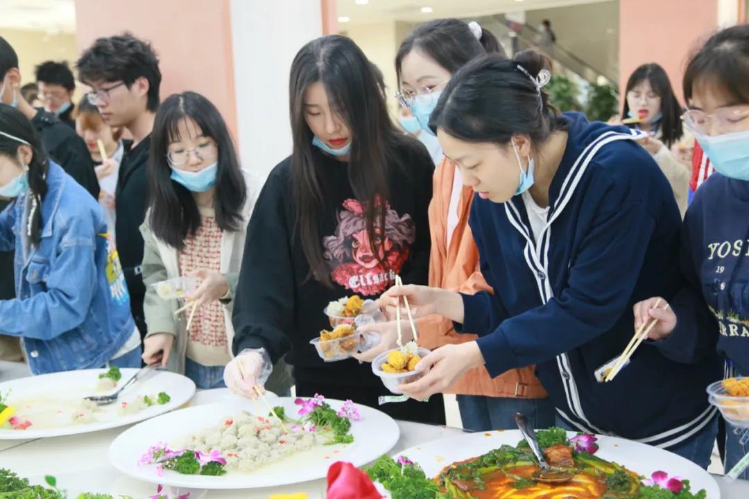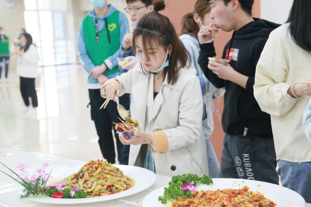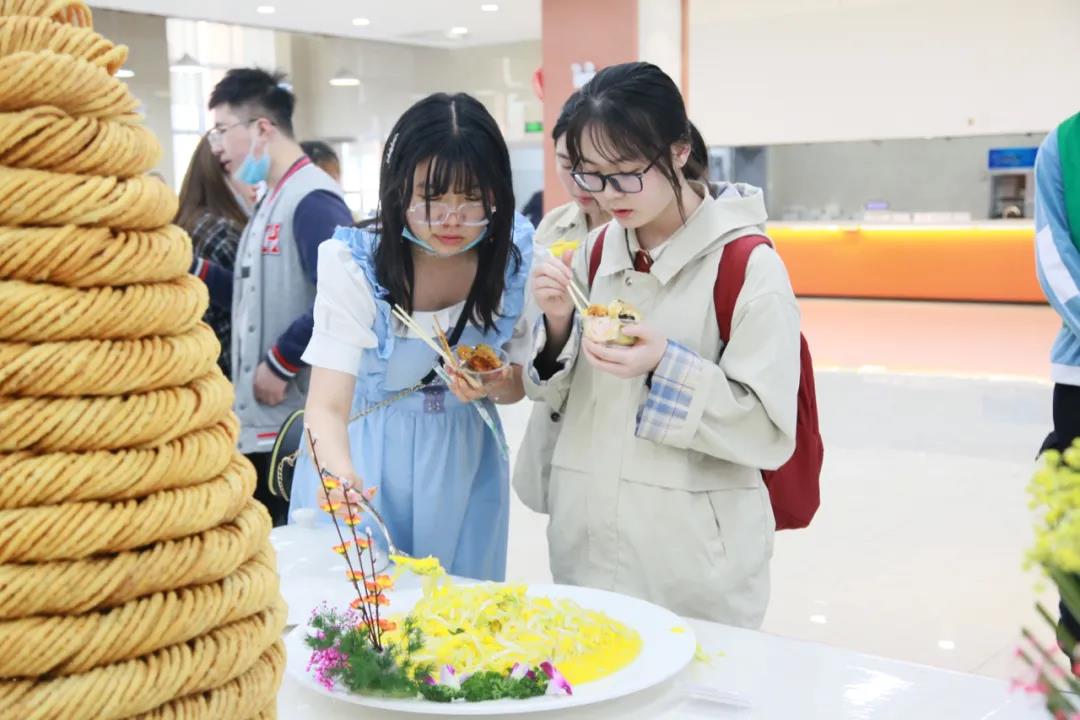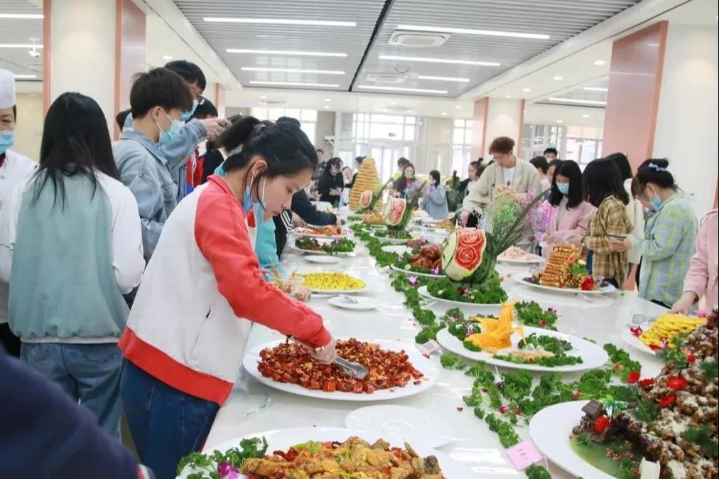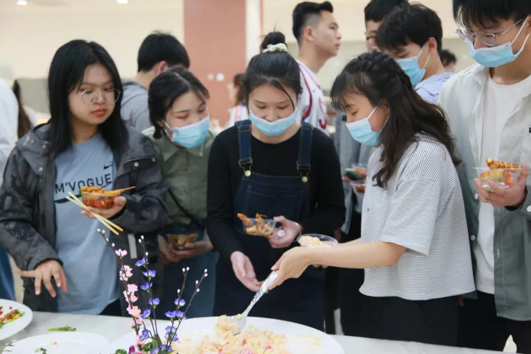 在海棠餐厅和红枫餐厅一楼大厅,由后勤处饮食服务中心厨师们精心为同学们准备的近百种各式菜肴、面点,摆上了餐桌。鲜嫩多汁的巴里坤羊排、黄焖羊肉暖胃又暖心,地道的柴窝铺辣子鸡、烤包子,让同学们吃出了家的味道,还有清蒸鲳鱼、橘子虾仁、香柠菠萝鸡、手撕牛肉、黄面烤肉……让大家吃得营养健康,吃出幸福滋味。