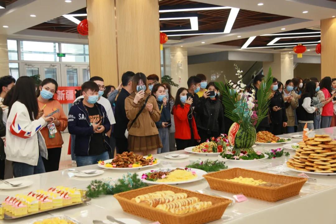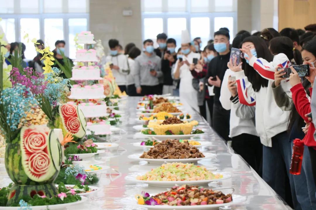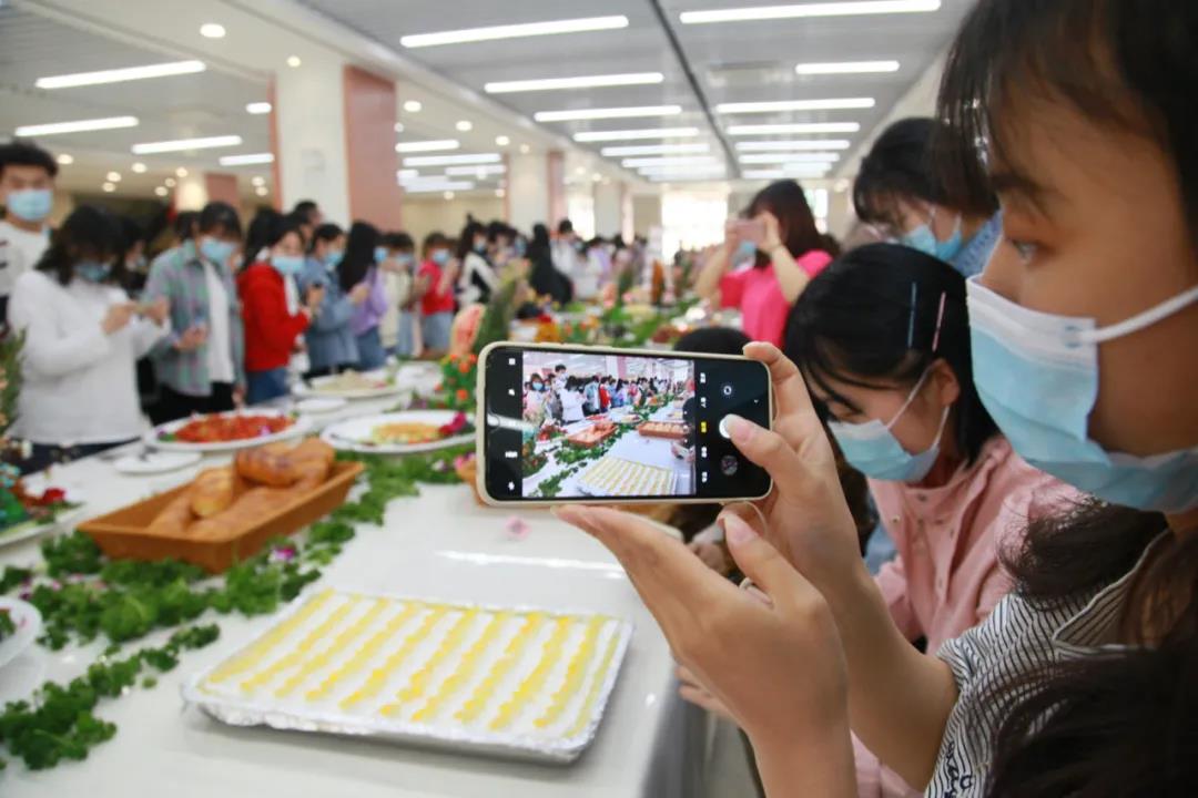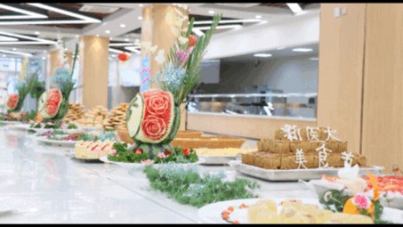 美味可口、品种繁多的精美菜品,深深吸引了同学们的目光。糕点师傅专门制作的六层蛋糕飘出阵阵奶油香气,技艺精湛的厨师们还在西瓜上雕刻出“新医大美食节”的字样,大家一边赞叹,一边拿出手机拍照发朋友圈,花式炫耀。诱人的香味弥漫在餐厅里,挑动起每个人的味觉。