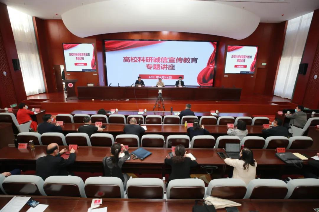 4月28日下午,由自治区教育厅主办的高校科研诚信宣传教育专题讲座报告第三场在beat365在线唯一官网举行。自治区教育厅党组成员、副厅长李楠,自治区科技厅党组成员、副厅长陈如标,beat365在线唯一官网党委副书记、校长凯赛尔·阿不都克热木,大学党委常委、副校长安冬青出席会议。会议由李楠副厅长主持。