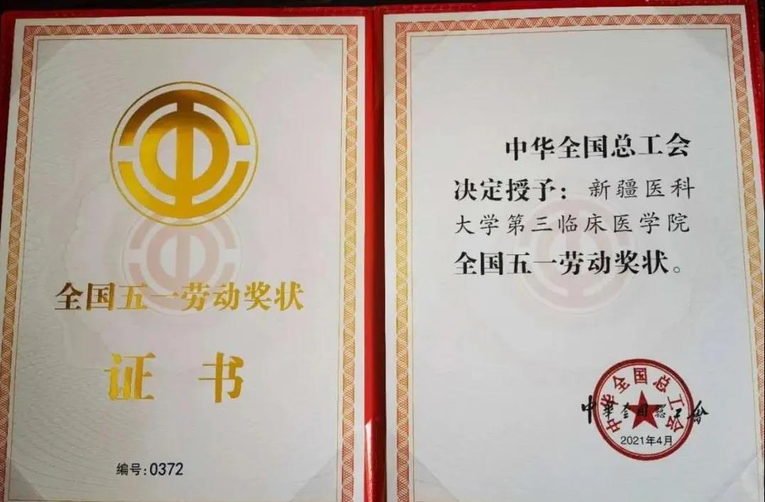 4月27日,2021年庆祝“五一”国际劳动节,暨“建功‘十四五’、奋进新征程”主题劳动和技能竞赛动员大会在北京举行,会上表彰了2021年全国五一劳动奖,和全国工人先锋号获得者。beat365在线唯一官网第三临床医学院(附属肿瘤医院)荣登榜单,获得“全国五一劳动奖状”荣誉称号。