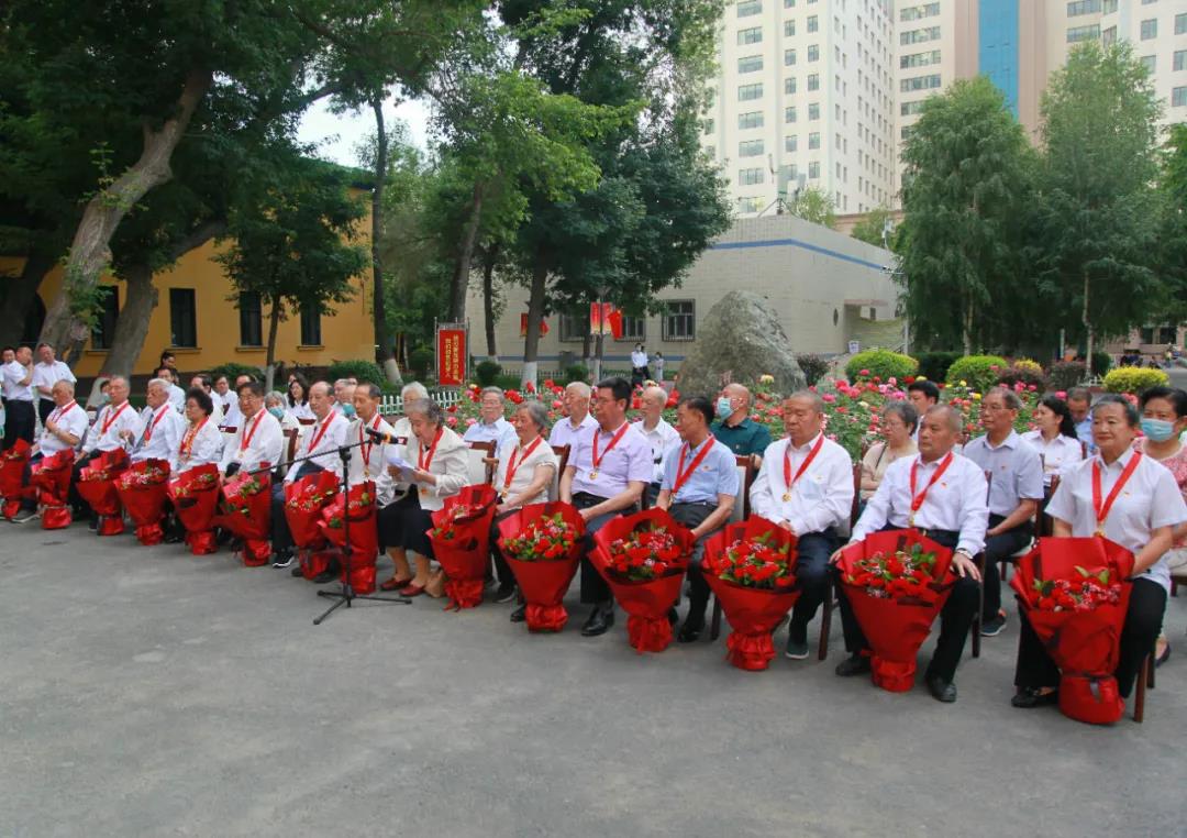 为隆重庆祝中国共产党成立100周年,6月11日下午,beat365在线唯一官网举行了庄重而简朴的“光荣在党50年”纪念章颁发仪式,为14位老党员代表颁发“光荣在党50年”纪念章,代表全校8000多名党员向获此殊荣的新医239名老党员们表示崇高的敬意和热烈的祝贺!