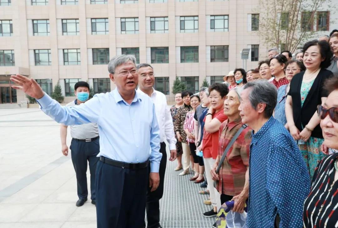 退休老专家热依汗·巴吾东听着校领导的介绍,内心十分激动。作为在鲤鱼山下的新医老校区长大的她对新医65年的发展变化有着深刻的感受和真挚的情感,“新校区从软硬件设备、条件和环境,在全国都是一流的。新医有今天的发展成就,不仅浸透着老一辈建设者的血汗,更凝聚了一代代新医人的奋斗。在这么宽敞、明亮的新校区里学习生活的新医学生是幸福的一代。希望同学们能在优美的环境中好好学习,将来更好地为边疆各族人民服务。”