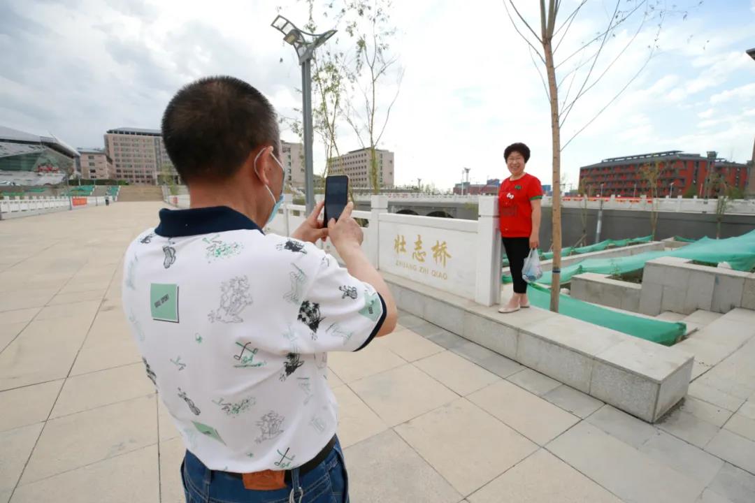 在讲解员的带领下,老同志们感受了教学楼具有现代科技感的智慧教室,参观了集颜值和实力于一体的网红图书馆,体验了国内一流水平的先进实验设施,在壮志、凌云桥上自拍打卡……老同志们对新校区的一楼一桥、一砖一瓦,一草一木是越看越喜欢、越看越振奋。