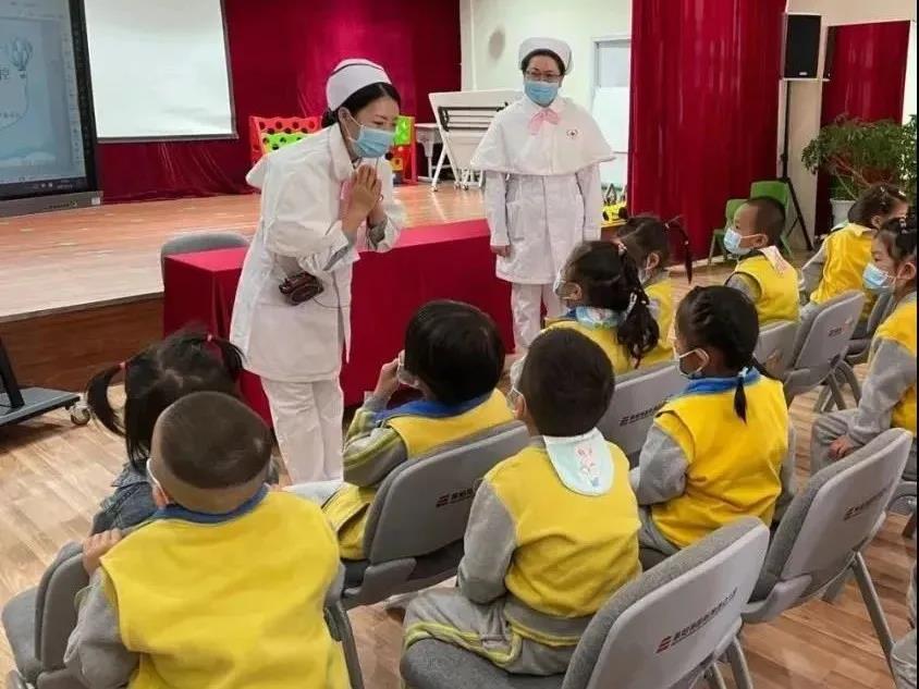 在活动现场,支部党员以《新冠肺炎疫情下的个人防护》《儿童意外伤害的预防》等课程入手,从戴口罩、洗手、咳嗽礼仪、预防意外伤害等四个方面,细致生动地讲解了小朋友们如何做好手卫生,形象地讲解了洗手的小口诀:“内、外、夹、弓、大、立、腕。”让他们在欢声笑语中学到了有用的“硬核”知识。