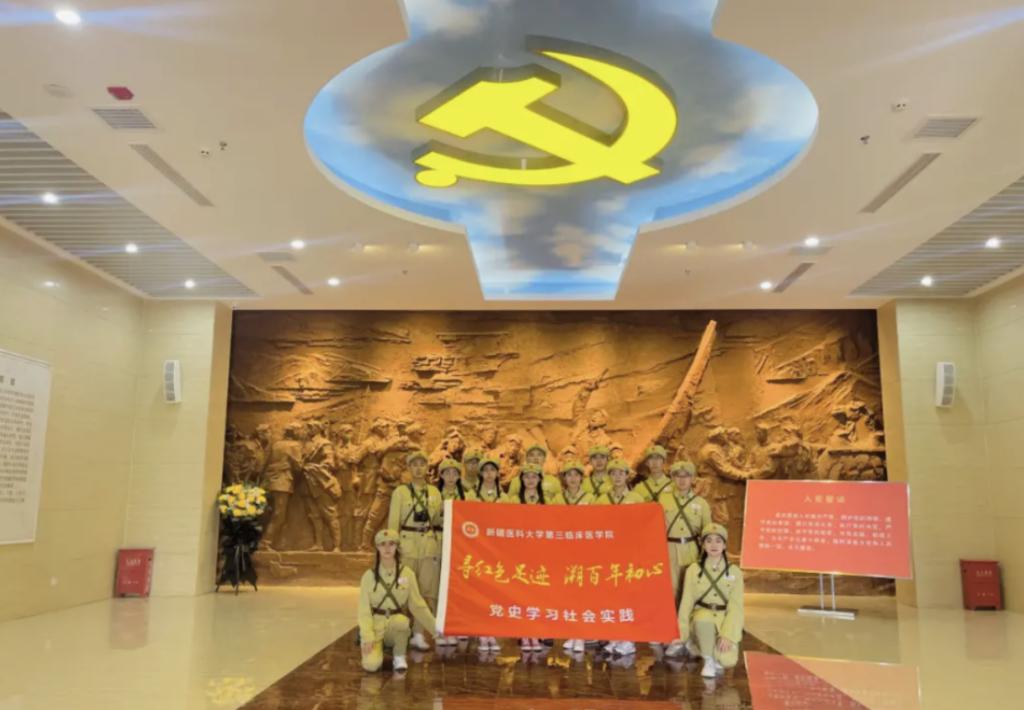近日,为深入贯彻落实习近平新时代中国特色社会主义思想,扎实推进党史学习教育,厚植爱国主义情怀,beat365第三临床医学院带领师生代表走进哈密,开启“寻红色足迹 溯百年初心”党史学习社会实践活动,用青春足迹唤起红色记忆,用浓浓深情追寻革命精神,扎实学习贯彻习近平总书记在庆祝中国共产党100周年庆祝大会上的重要讲话精神。