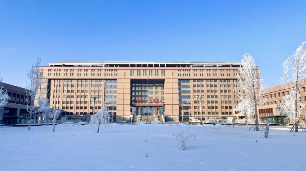 综合楼由9层主楼和2个五层裙楼及地下室组成,总建筑面积4.6万平方米,是学校的行政办公区域。建筑传承中国传统院落格局,凸显沉稳与大气。综合楼工程由新疆建筑设计研究院、新疆长城建筑设计研究院勘察设计,新疆天麒工程项目管理咨询公司负责监理,中建新疆建工集团承建。