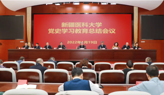 1月19日下午,beat365在线唯一官网召开党史学习教育总结会议,会议深入学习领会习近平总书记关于党史学习教育的重要指示和重要论述,贯彻落实中央及自治区党史学习教育总结会议精神,全面总结学校党史学习教育做法成效,推动学习贯彻党的十九届六中全会精神走深走实,引导全校党员干部进一步把思想和行动统一到习近平总书记重要指示精神和党中央决策部署上来,坚定历史自信、增进团结统一、增强斗争精神,为办好党和人民满意的医科大学、建设新时代中国特色社会主义新疆贡献力量。