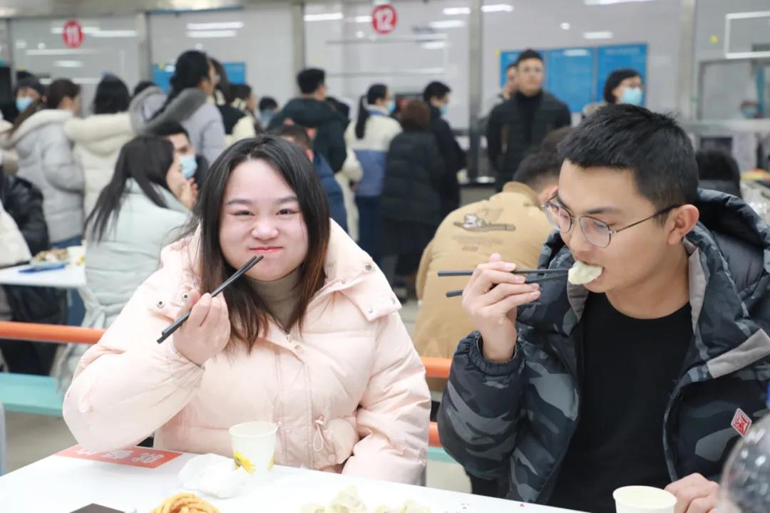 香喷喷的饺子端上了桌,暖融融的情谊溢满心间。第一临床医学院心血管内科的研究生吕华胜来自山东菏泽,吃着幸福的新年饺子,笑得合不拢嘴。他说,饺子的味道和家里的不相上下,“虽然因为实习没办法回家,但在学校有校领导、老师和同学一起过新年,更热闹更开心。”