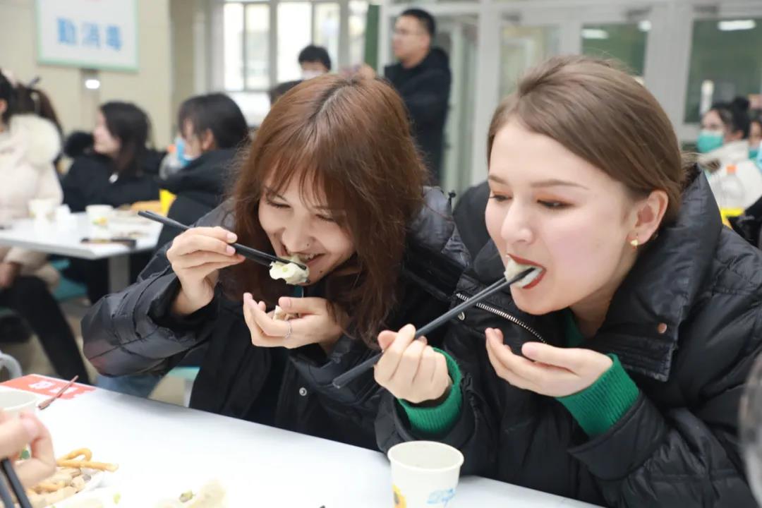 今年春节,学校专门为留校学生们准备了精心搭配的丰盛年夜饭,除了丰富的菜品、可口的饺子,还有各色糕点、水果、饮料、瓜子等小零食,让同学们感受和在家一样的新年美味。儿科学院本硕班学生迪格达尔·托汗说,“过年前,爸妈原本很担心我在这里吃不好,但是我刚刚给他们看了我们学校的年夜饭,还有丰富的活动,我爸妈知道我在学校过的很好,都很放心。”