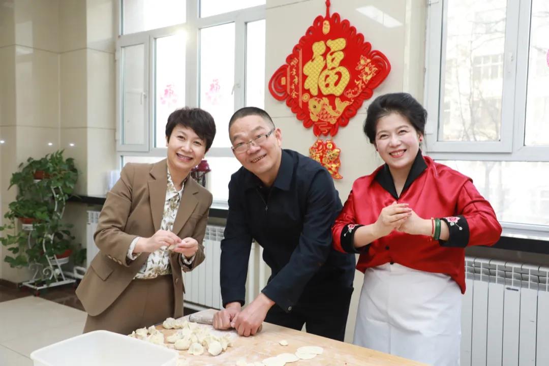 拌馅、擀皮、包饺子……校领导和老师们撸起袖子,和同学们一边包着新年的幸福饺子,一边唠着家常,高书记细心地教身边的学生包饺子的“秘诀”。大家一起动手,不一会儿功夫,一盘盘排列整齐的饺子便下锅了。