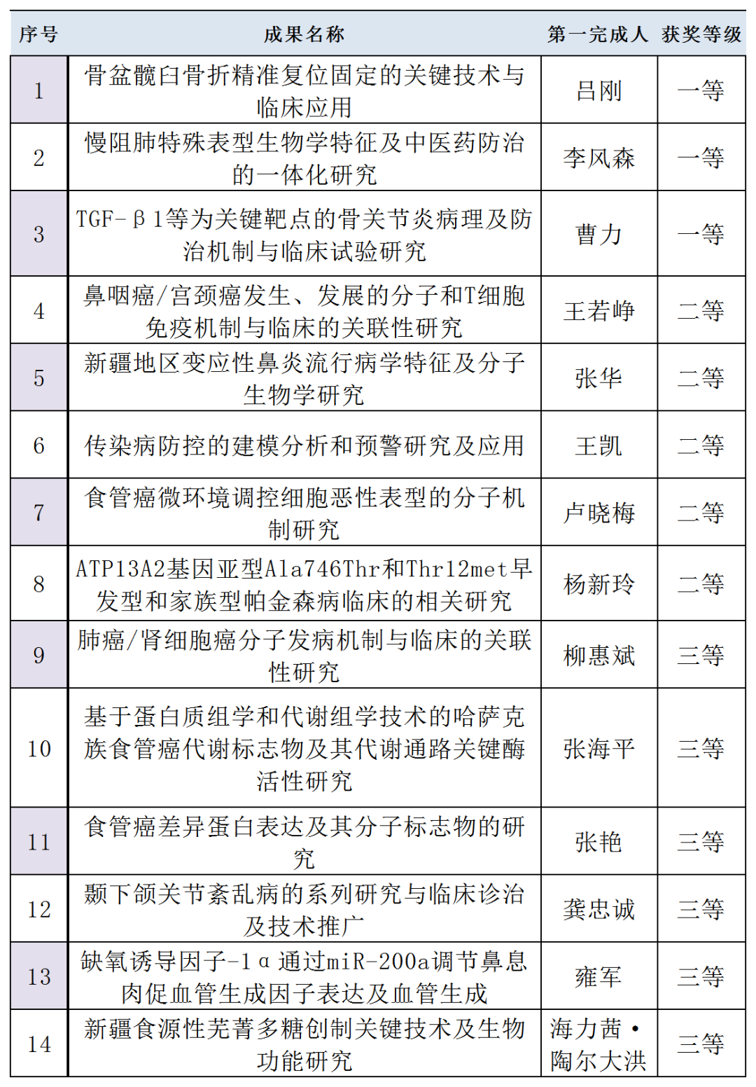 2021年度获自治区科技奖名单