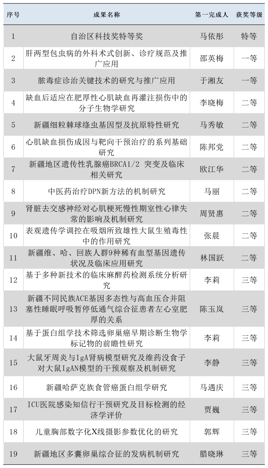 2019年度获自治区科技奖名单