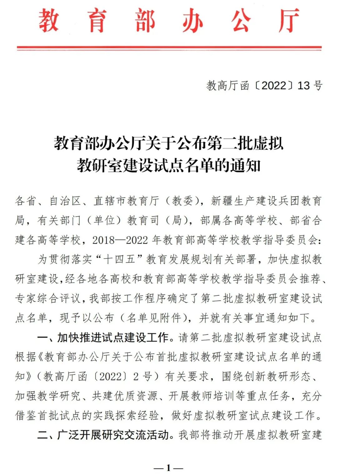 虚拟教研室是信息化时代新型基层教学组织建设的重要探索,此次评选是为贯彻落实“十四五”教育发展规划有关部署,加快虚拟教研室建设,经各地各高校和教育部高等学校教学指导委员会推荐、专家评议,教育部选拔出的虚拟实验室建设试点。