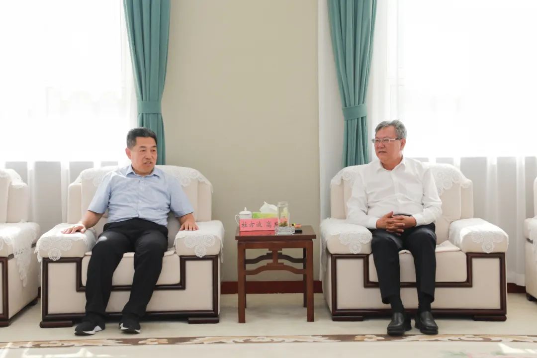 7月22日下午,校党委书记高发水与来beat365参观考察的青岛大学党委副书记杜方波一行座谈交流。