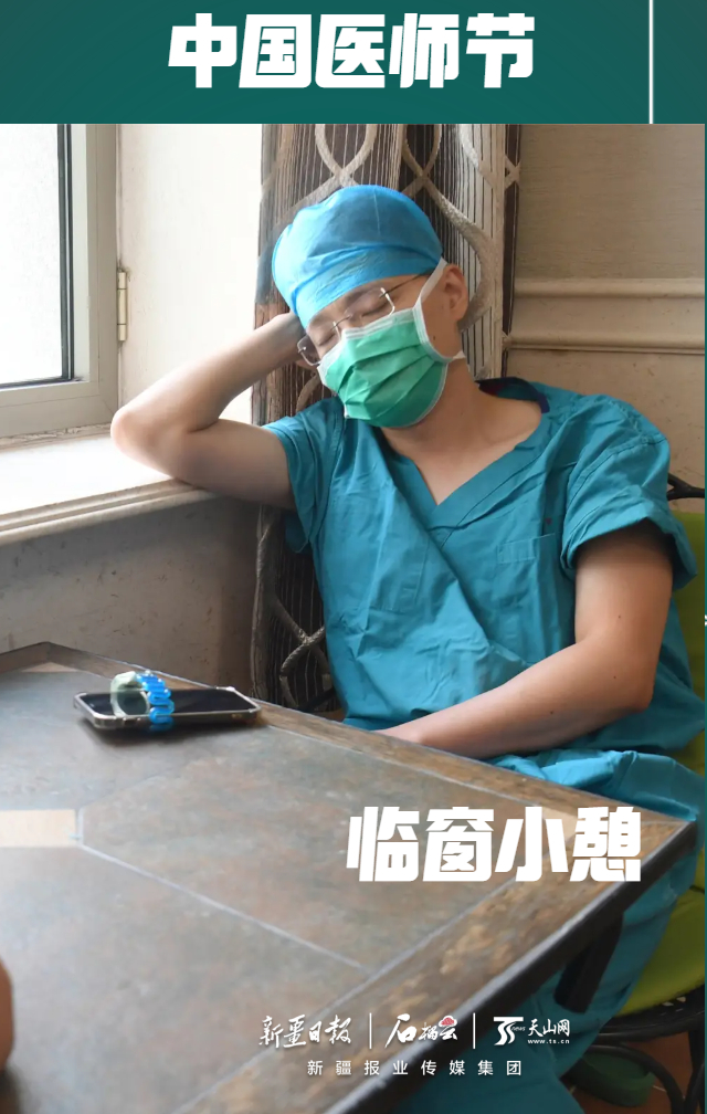 beat365在线唯一官网附属中医医院(自治区中医医院)骨三科副主任医师黎立在手术间隙休息,缓解疲劳。石榴云/新疆日报记者 韩亮摄