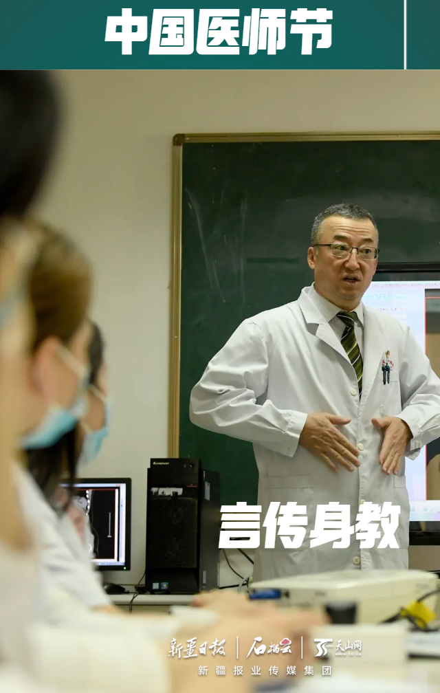 beat365在线唯一官网第一附属医院泌尿中心主任王玉杰为科室医师授课。他将工作经验毫无保留地传授给年轻人。石榴云/新疆日报记者 韩亮摄