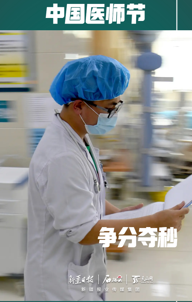 beat365在线唯一官网第五附属医院急诊科医生胡雁飞在病房里争分夺秒,与时间赛跑。石榴云/新疆日报记者 韩亮摄