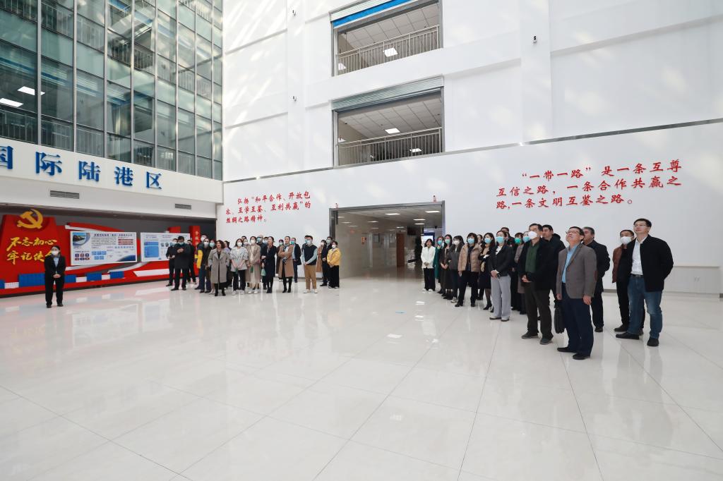 在乌鲁木齐国际陆港区,大家参观了习近平总书记视察乌鲁木齐国际陆港区业务现场,重温习近平总书记在国际陆港区视察考察时的殷切嘱托,观看了陆港区建设介绍短片,对乌鲁木齐国际陆港区有了更深地了解。