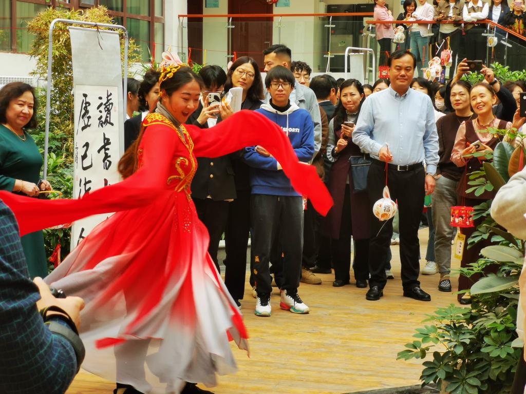 活动现场,130余名师生一起猜灯谜、学诗词,学院为全体师生准备了月饼,老师们为大家献上了书法作品和舞蹈表演,现场气氛热烈。本次活动是人文学院2023年秋季学期“开学季”系列教育活动之一,旨在通过中华传统节日和师生一起体会我们共有精神家园的温馨与和谐,感受中华优秀传统文化的魅力所在。