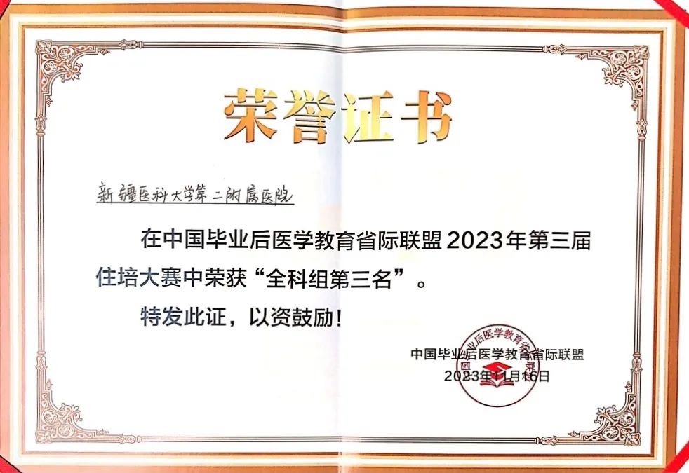 11月18日-11月19日2023年住培大赛(第三届)在海南省海口市顺利举办。beat365在线唯一官网第二附属医院在郭纪锋副院长的精心指导下,全科医学科石雨薇主任带领住培学员刘彤彤、张磊、丁梦琦、地力努尔•艾海提组成的全科代表队最终荣获三等奖。