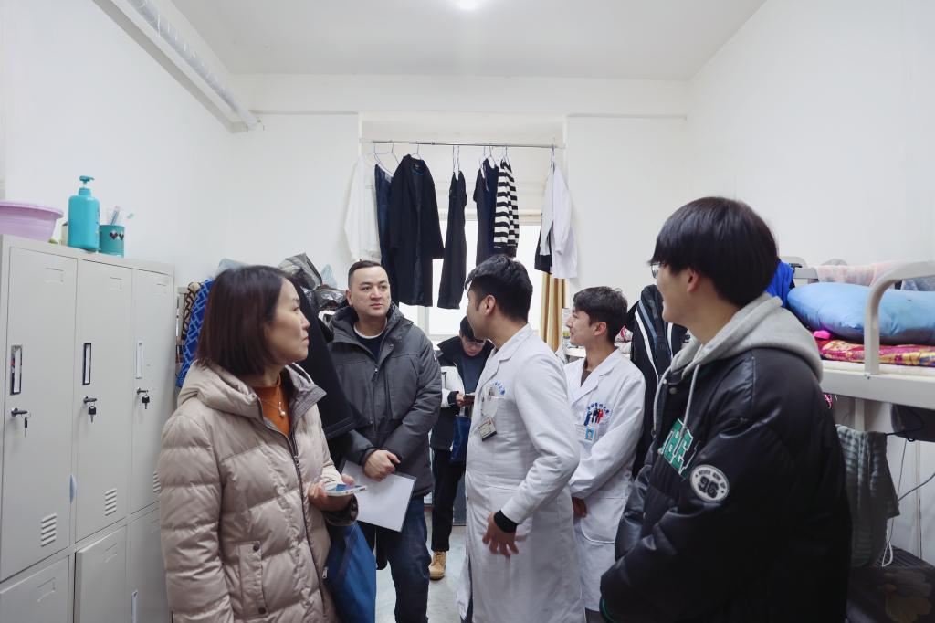 beat365一行人员走访了各基地院区、科室、技能培训中心、实习生宿舍等地,实地了解了基地的建设和实习生管理情况,详细询问了beat365实习生在学习、生活、思想状况方面的相关情况,希望同学们要珍惜实习机会,加强临床技能训练。beat365相关负责人对各基地给予学校实习生悉心的指导、细心的帮助表示感谢,并向各医院介绍了学校在提高实习生临床实践质量的各项举措,随后双方就实习生在知识储备、基本技能、综合素质等方面存在的情况进行了深入交流。