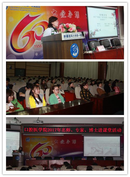 为了培养同学们的临床思维,将医学专业知识与临床经验相结合,引导同学们成为优秀的医务工作者,口腔医学院于4月16日在门诊楼6楼开展了“2017年口腔医学院名师、专家、博士进课堂活动”,此次活动受到了学院的高度重视,会议主讲人是从事口腔医学临床、教学及科研工作25年余并担任博士生、硕士生导师的何惠宇教授,学院 2012级、2013级、2014级全体学生与学院老师参加。