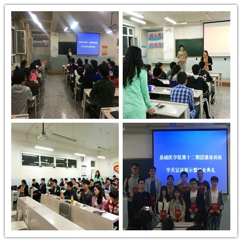 为进一步提高广大团员青年的理论素养,不断提升团员的实践能力和综合素质,调动团员青年的积极性,不断提高学院团学干部的思想水平和工作能力,大力加强共青团员队伍建设,引导广大共青团员树立做好团学工作的荣誉感、责任感和使命感,基础医学院第十二期团课培训班于4月11日开班。为期两周的团课培训班于4月28日已结束。为了验证本期团课效果,更是给学员展现自我的平台,按照团课日程安排,进行了一次学员宣讲展示。