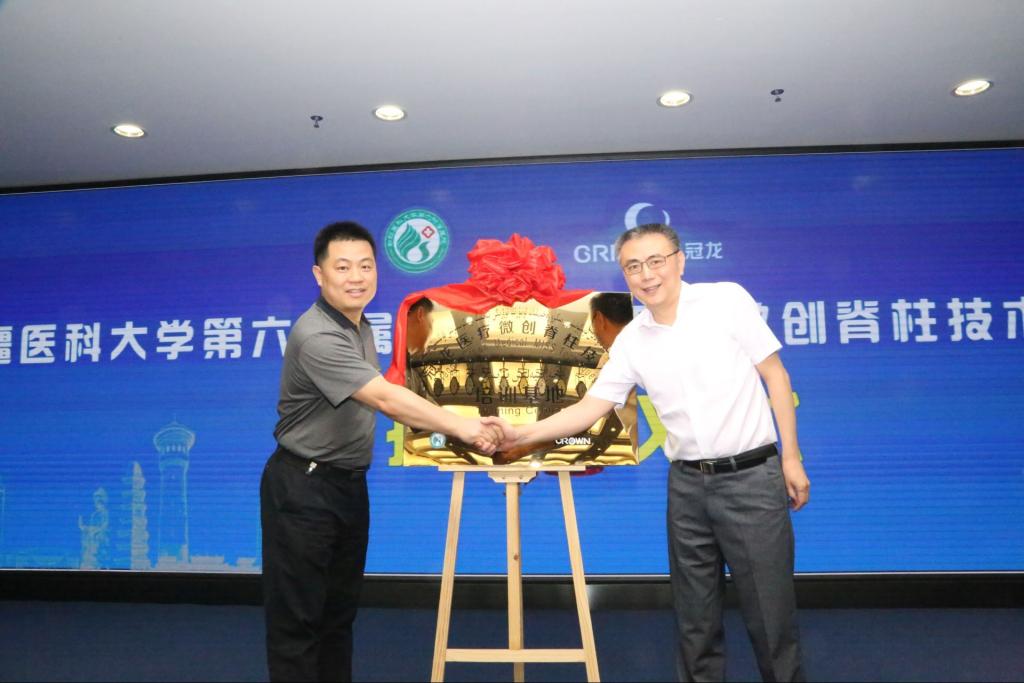 会议还举行了冠龙公司脊柱微创技术培训基地授牌仪式,培训基地设在beat365在线唯一官网第六附属医院微创脊柱外科。