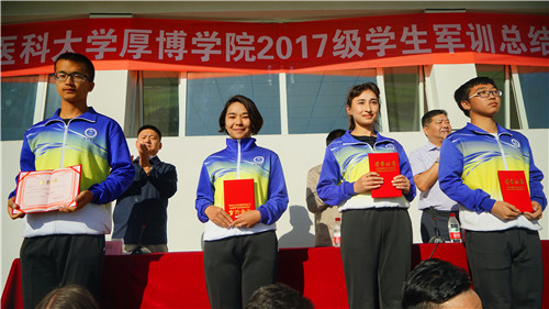 论知识,受到了深刻的国防教育和爱国主义教育,增强了集体主义意识和团队精神,军训取得了圆满成功。希望同学们在日常生活中积极培育和践行社会主义核心价值观,把人生的第一粒扣子扣好、扣正、扣牢,进一步强化国防意识,牢固树立“忘战必危、守土有责”的大国防观念,在关键时刻能够勇于担当;最后,希望同学们在克拉玛依学习和生活的这段大学时光中,秉承“厚德博学,笃志力行”的校训精神,结合克拉玛依“爱国奉献、艰苦创业、民族团结、求真务实、追求卓越”的时代精神,努力成长为可堪大用、能担重任的栋梁之才!在守护人类健康和生命的这一崇高而神圣的使命中奋勇前行、奋发有为!