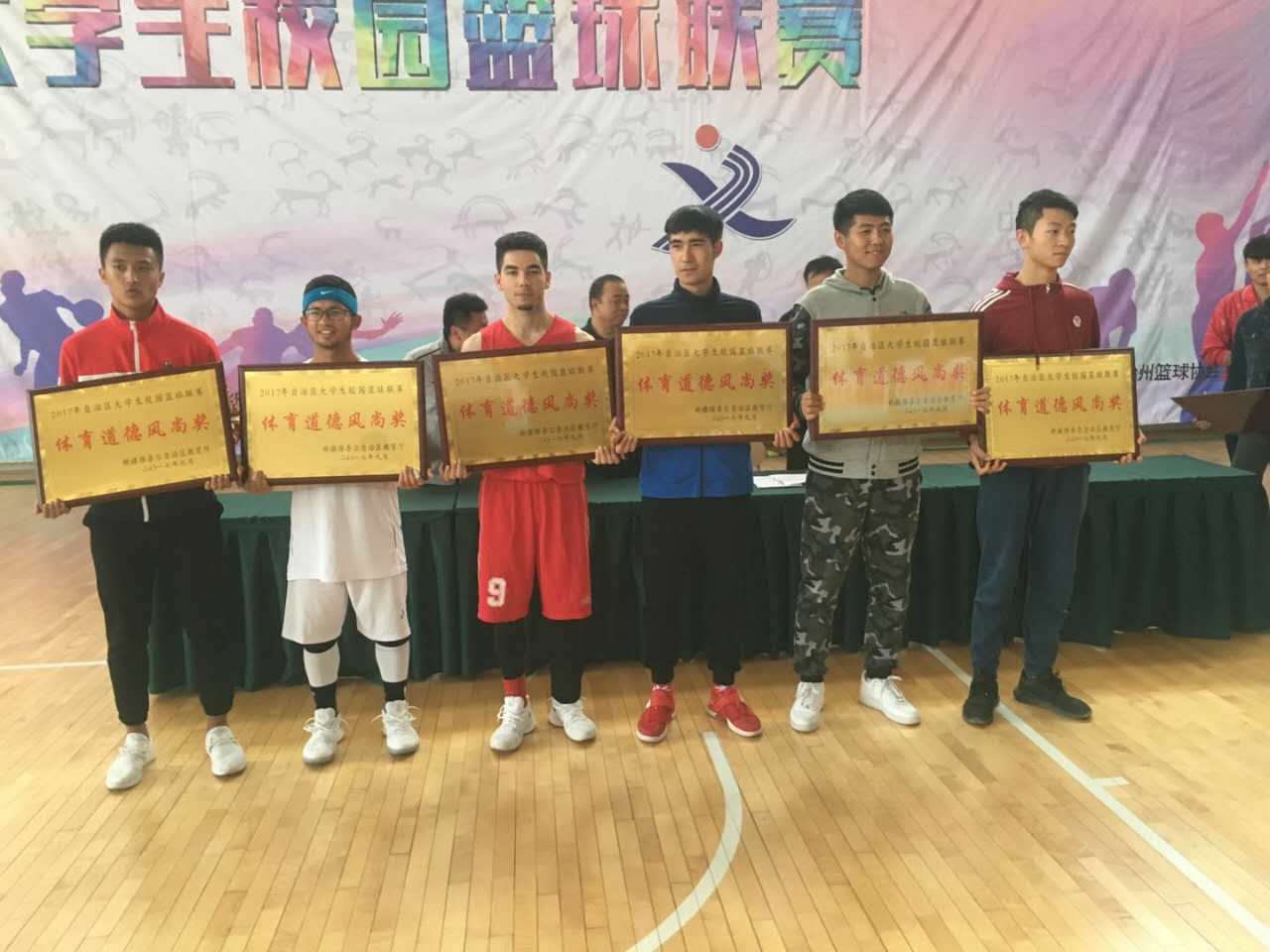 2017年自治区大学生CUBA篮球赛9月21日-27日在昌吉学院开赛,beat365在线唯一官网男子篮球队夺得大学男子甲组季军的历史最好成绩,并获得“体育道德风尚奖”。