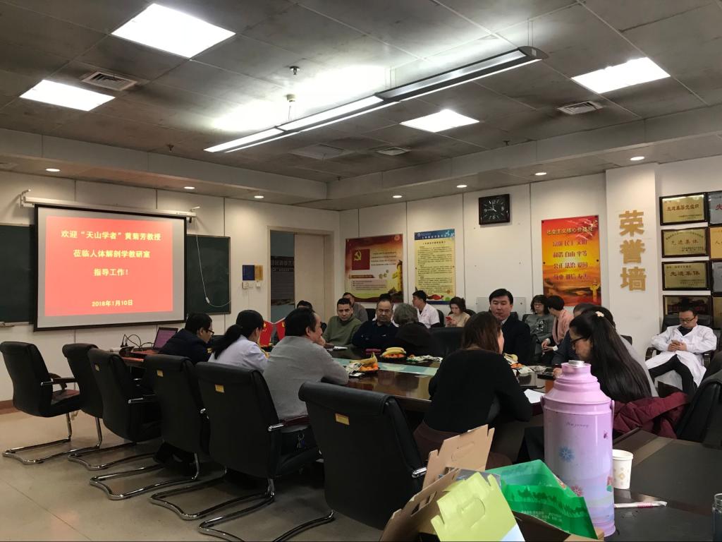 为高质量履行自治区第四批“天山学者高层次人才计划”聘任合同,落实工作计划,黄菊芳教授在来校之前,对合同任务做了认真分析,分轻重缓急和学院、学科进行反复磋商,提前准备了新开课程的教学计划、科研项目质量提升计划、人才团队组建和发展计划、科研与教学成果梳理与组织的思路等。一来到基础医学院,黄菊芳教授直奔人体解剖学与组织胚胎学教研室,先后就师资队伍建设、教学、科研等方面的整体发展情况,与教师们进行座谈,结合自治区“天山学者高层次人才计划”给学科带来的发展机遇、提出了抓好教学质量、凝炼学科方向、提升人才团队水平、促进师资合理交流的工作设想。