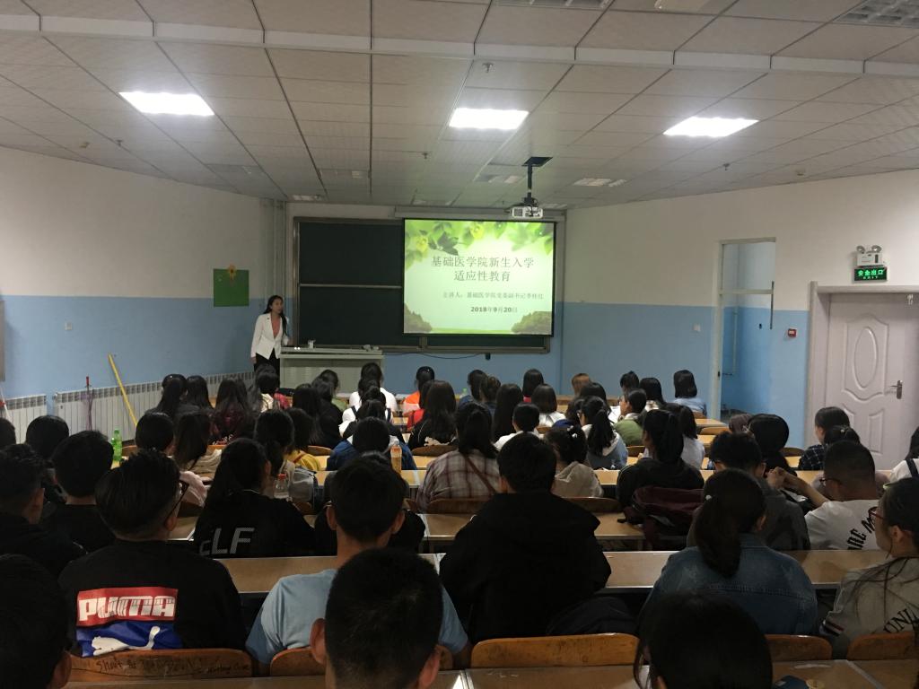 李桂红向新生们介绍了学院的基本情况和发展现状。她说,基础医学院的教学师资队伍力量强大,有多名教师获得了国家级、自治区级和校级名师荣誉称号。各班班主任都是经过精心选拔,高标准配备的,希望新生们以班主任为标杆,不断完善和提高自己,走好大学生活的每一步。面对新的环境,新的人际关系,每个同学都要敞开心扉,常含包容和感恩之心。在最好的新时代,立下鸿鹄之志,做有志青年。