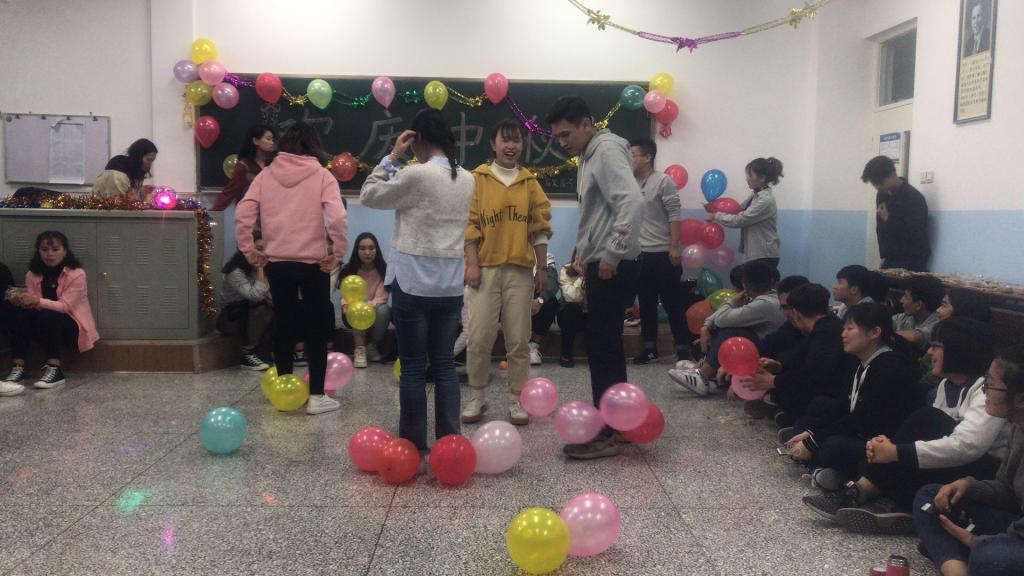 各学院领导、“三进两联一交友”教师纷纷走进班级,与同学们一起欢度佳节。气球彩带、月饼水果,每个班级布置的温馨无比。一支支欢快的舞曲、一个个精彩的才艺、一场场有趣的游戏,把班会的气氛完全调动起来。同学们活力四射,各位领导、“三进两联一交友”教师、班主任们融入其中,歌舞伴着欢笑、音乐放飞心情,庆祝活动欢快而美好。(插图11-16)