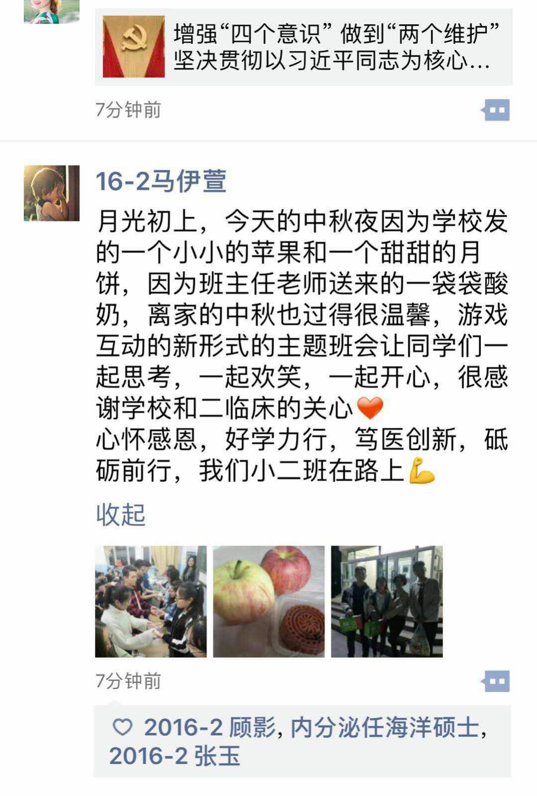 欢聚一堂,共庆中秋,让异地求学的同学们体验到家的温暖。同学们纷纷发表感言:“感谢校党委对我们的亲切关怀,在离家的中秋之夜感受到家的温暖”、“虽然中秋节不能回家,但是与同学们在一起,收到学校的月饼和苹果,心里暖暖的”、“因为班主任老师送来的一袋袋酸奶,离家的中秋也过的很温馨”。