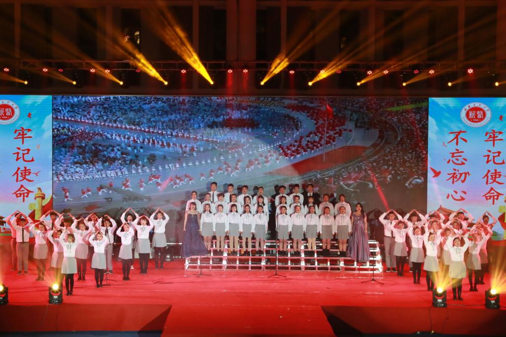古典舞蹈《梁祝》、师生歌伴舞《说唱脸谱》及现代舞《赞赞新时代》,用曼妙的舞姿表达了弘扬中华民族传统文化的信心。《旗秀》《东方迷彩》等动静结合的T台形体展示,展现了克拉玛依学院新时代青年的昂扬风姿。朗诵《承千年精粹,修德运之人》、舞蹈《中国制造》用新颖的舞台形式讲述了传统文化之美,更充分展示了青年学生的青春与活力,赢得了一阵阵掌声和欢呼声,把晚会的气氛推向高潮。最后,晚会在全体师生《不忘初心》的合唱中圆满落幕。