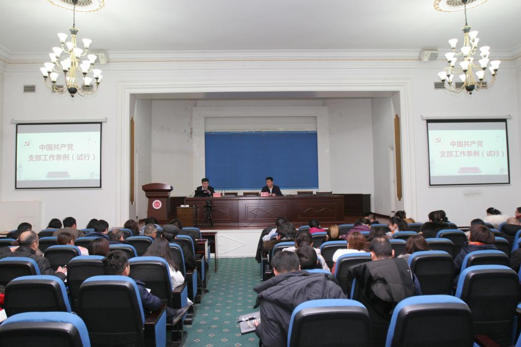1月9日,机关党委举办《中国共产党支部工作条例(试行)》解读专题讲座,组织部副部长韩生辉作专题辅导,机关党员干部近百人收听讲座,机关党委宣传委员、党政办主任王宏伟主持会议。