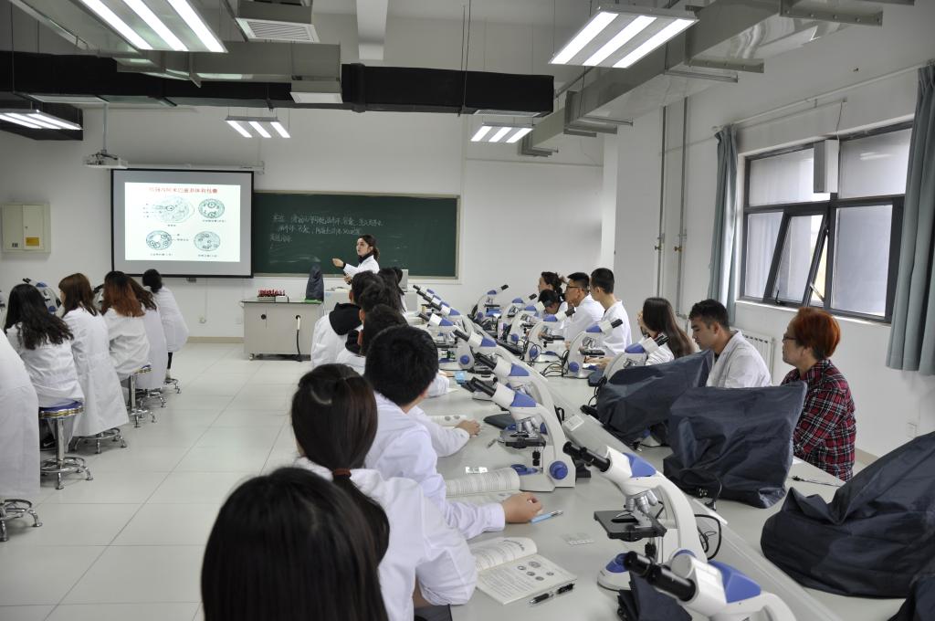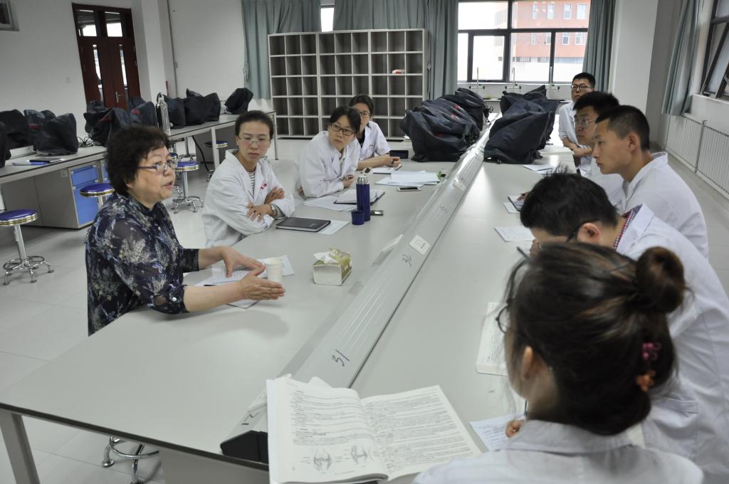 在进行了简单座谈后,老专家、老教授们分组进入班级进行督导听课,原公共卫生学院付德润教授结合自己在新疆50余年的工作、生活经历为广大师生们做了《用胡杨精神做人、做事、育人》的专题讲座。老专家们还进入教室听课、进入实验室辅导实验,与教研室辅导年轻教师集体备课等。原基础医学院教授、国家名师张建龙为全体教师做了《教案书写与课件制作的规范要求》讲座。