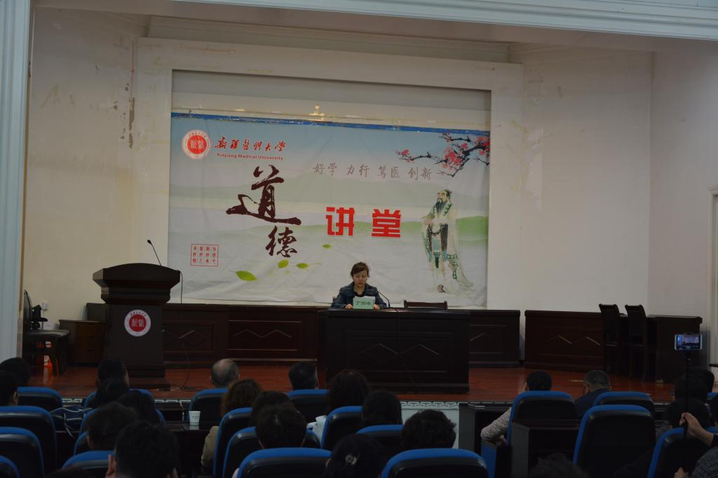 在学模范环节中,开发建设新疆奖章获得者、基础医学院丁剑冰教授从教学、工作及生活等几个方面给大家讲述了她自己的经历。她谈到做一名被学生尊敬的高校教师,首先要有敬业奉献的精神,爱学生,愿意为他们付出。同时她作为自治区重点学科的负责人带领着青年教师克服困难、勇挑重担,在建设重点学科的工作中屡创辉煌。